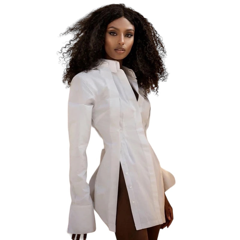 Turn-down Collar Shirt Dress Women long Sleeve Buttons Shirt
