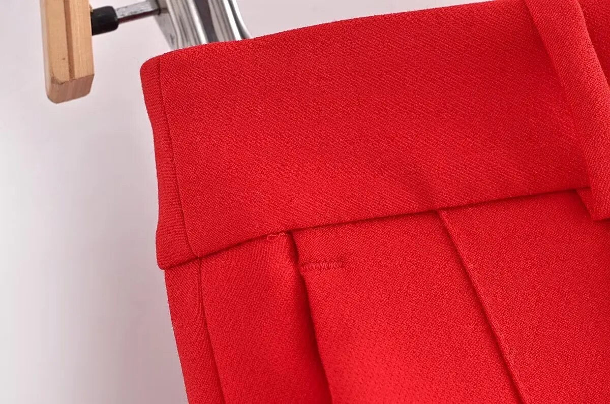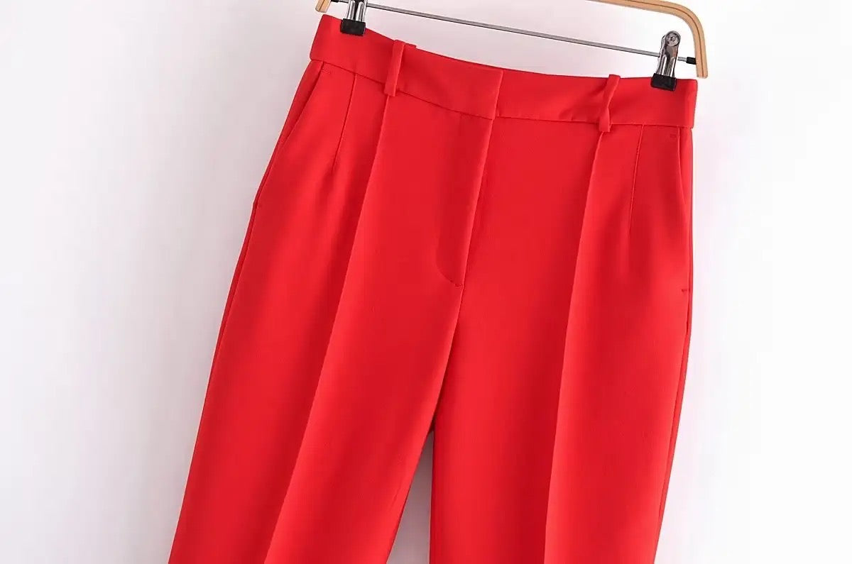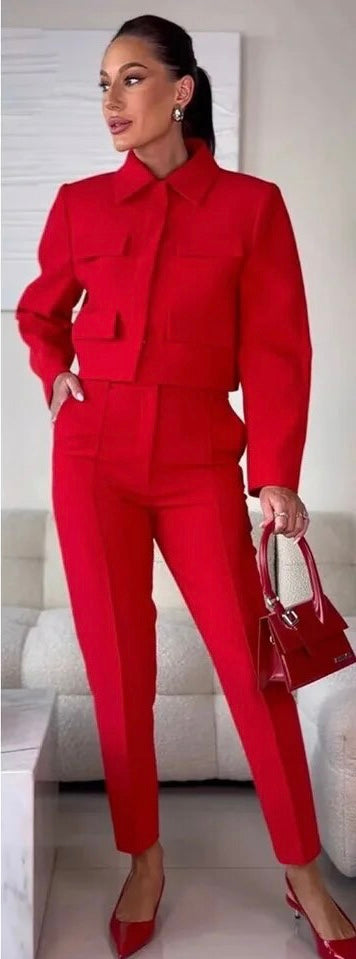 Women Fashion Single Breasted Turn Down Collar Red Coats